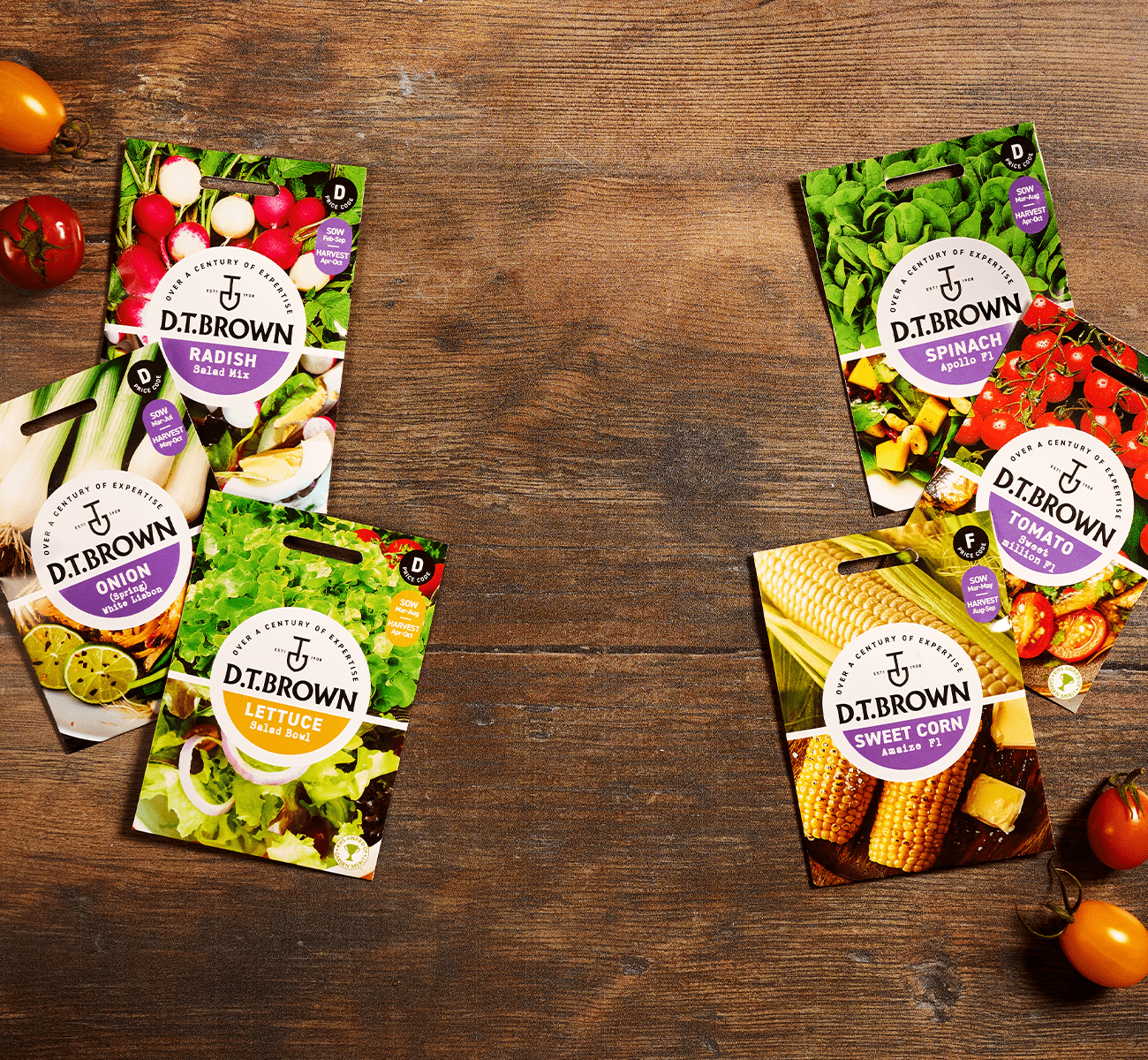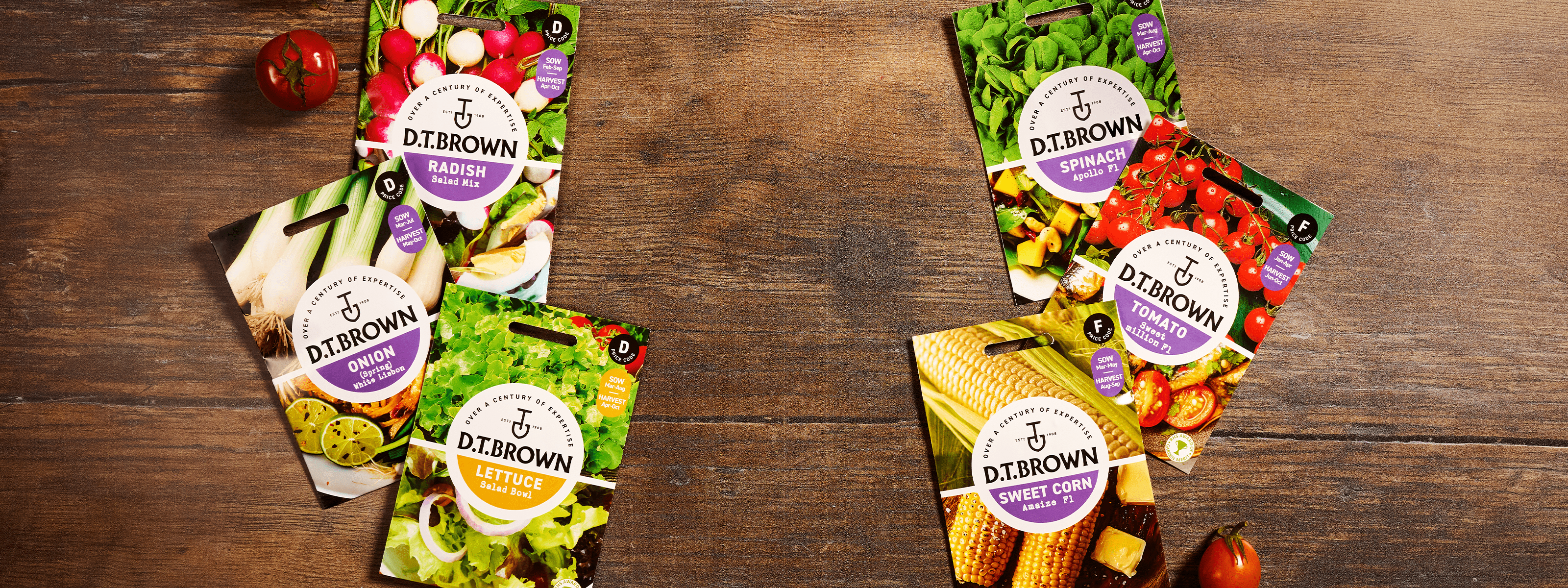 D.T. Brown are one of the UK's leading growers and gardening merchants selling everything you need for your garden or allotment, offering great quality and value. Shop now from our great range of vegetable seeds, seed potatoes, onions, garlic, vegetable plants, soft fruit and fruit trees. Plus we have an extensive range of tools, accessories and equipment for all your gardening jobs.
