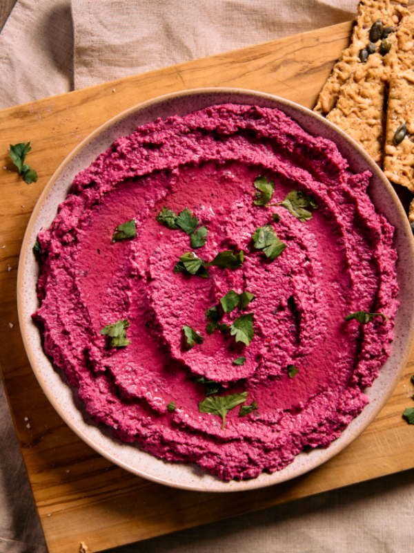 A vibrant dip that makes the most of home-grown beetroot. Earthy, sweet and full of colour