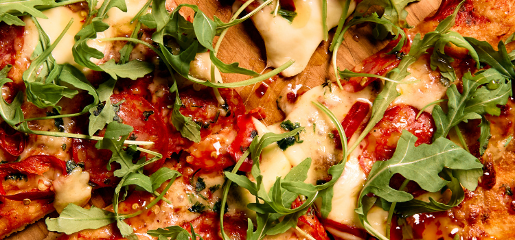 Crisp homemade pizza topped with fresh rocket, creamy mozzarella and prosciutto, simple, vibrant and full of flavour.