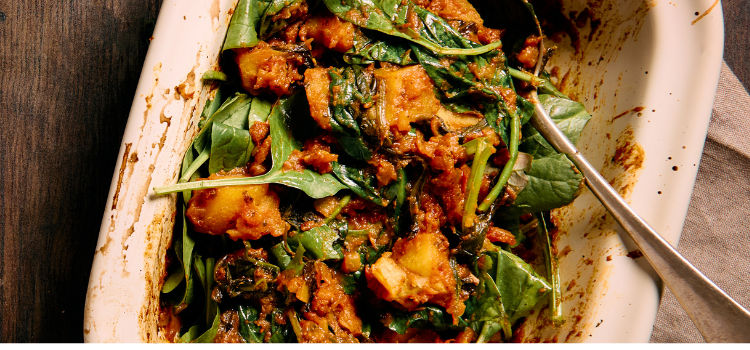 A fragrant, colourful dish that makes the most of fresh home-grown spinach paired with warming spices.